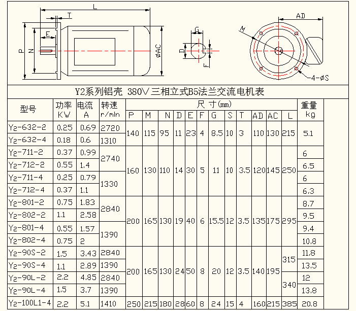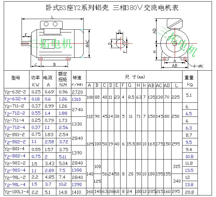 | Y2-802-4 | 0.75kW | 2A | 1390RPM | 5.11N.m | 10.8kg |