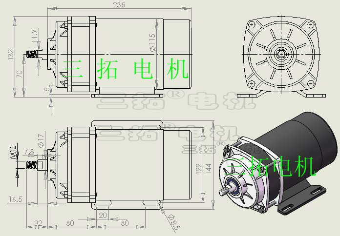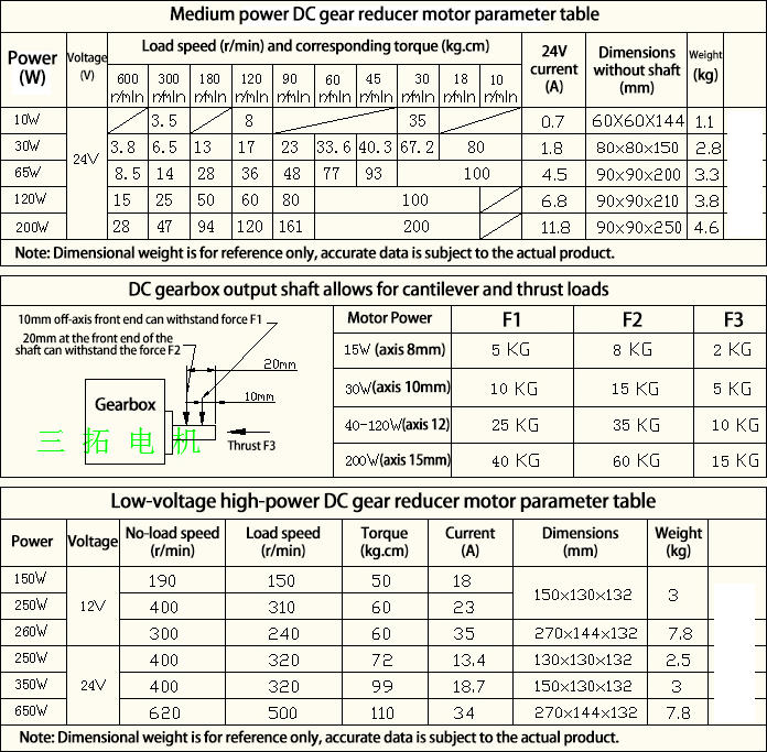 | 260W | DC12V | 35A | 300RPM | 240RPM | 60kg.cm | 7.8kg |