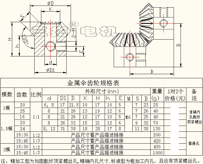 多规格、孔径可选,有:1模、1.5模、2模,直齿、伞