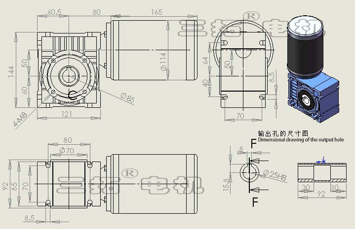 | DC24V | 15A | 1:30 | 56RPM | 42RPM | 360kg.cm | 8.5kg |