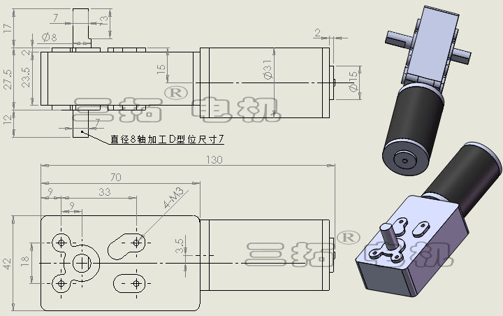 | DC12V | 1.5A | 4RPM | 3RPM | 40kg.cm | 0.38kg |