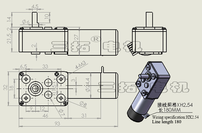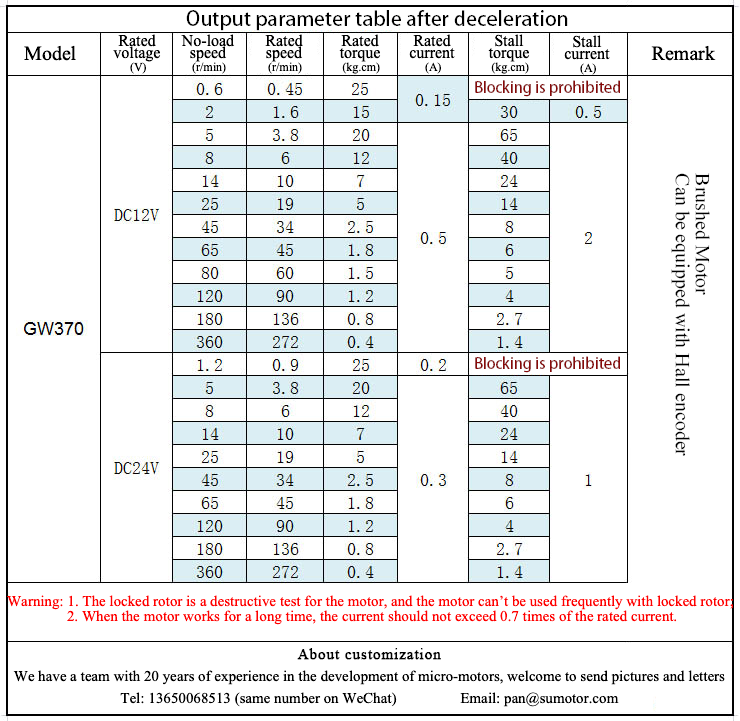 The high-speed shaft of the motor has been equipped with a Hall encoder, which can output pulses. The high-speed shaft of the motor rotates 1 circle and outputs 12 pulses. The 1 pulse signal represents the rotation angle of the output shaft of the gearbox = 360°÷12÷Reduction ratio , you can use this signal plus the control mechanism to detect the actual speed of the motor and the angle of rotation of the output shaft. Different models have different reduction ratios, please consult customer service when purchasing.