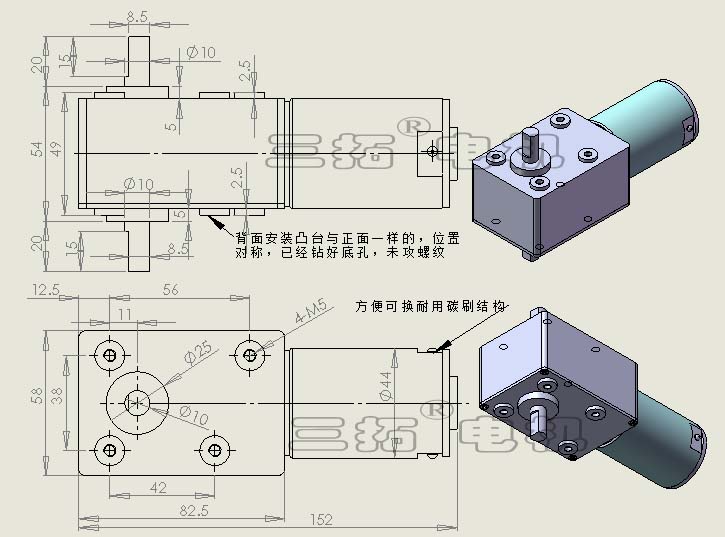 3、马达在无电情况输出轴具备一定自锁性