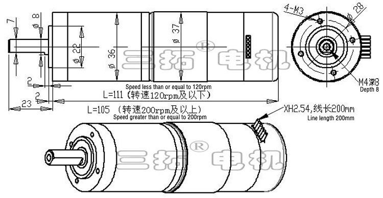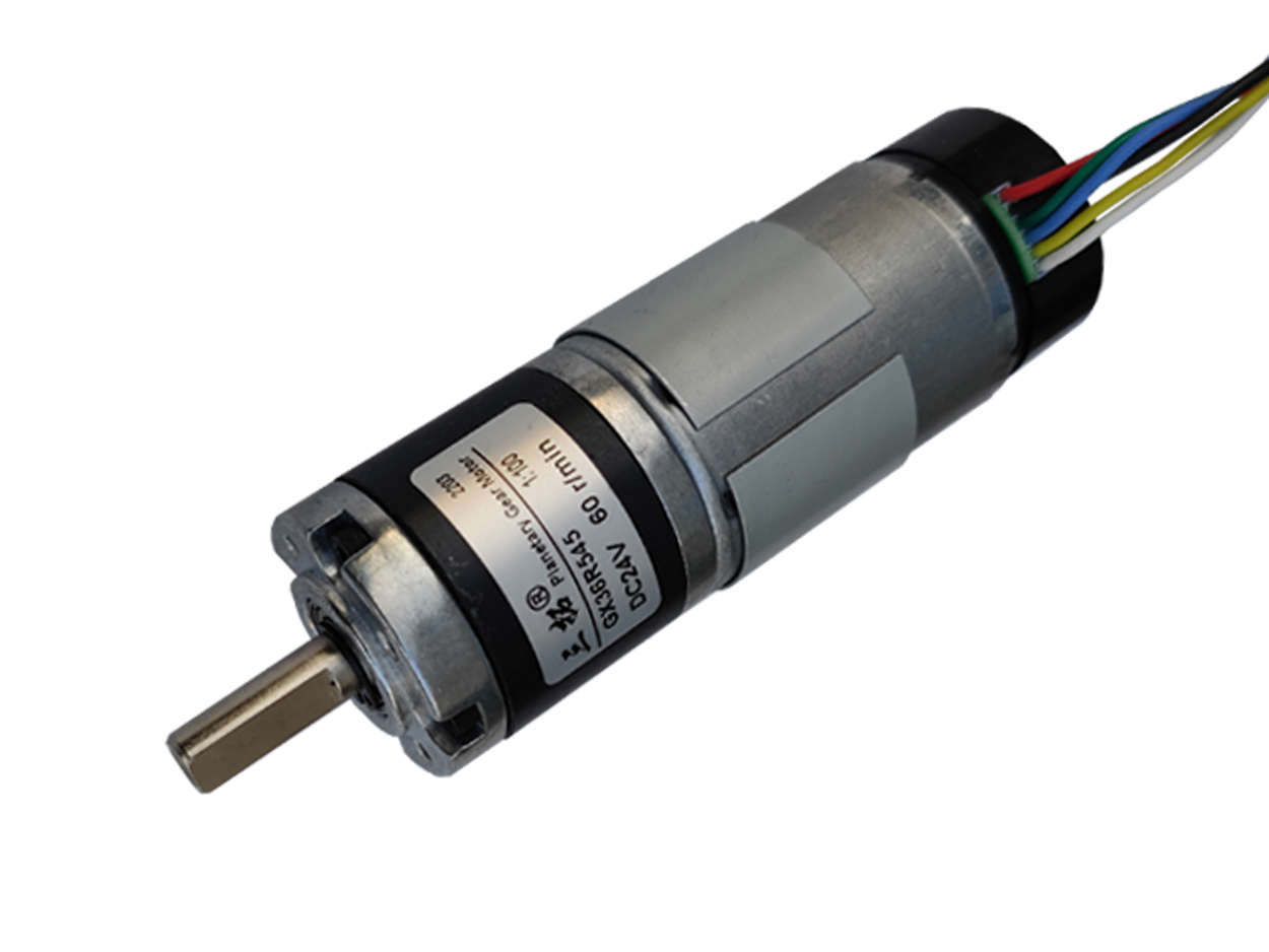 GX36R395 can be equipped with an encoder, which is a high-performance two-channel incremental magnetic encoder, suitable for harsh environments. Each magnetic encoder contains a magnetic ring and a Hall detection circuit, and outputs two square waves. The high-speed shaft of the motor rotates 1 circle and outputs 13 pulses. The 1 pulse signal represents the rotation angle of the output shaft of the reducer = 360°÷13÷reduction ratio. The buyer can use this signal to add the control mechanism to detect the actual speed of the motor and the rotation of the output shaft. Angle.