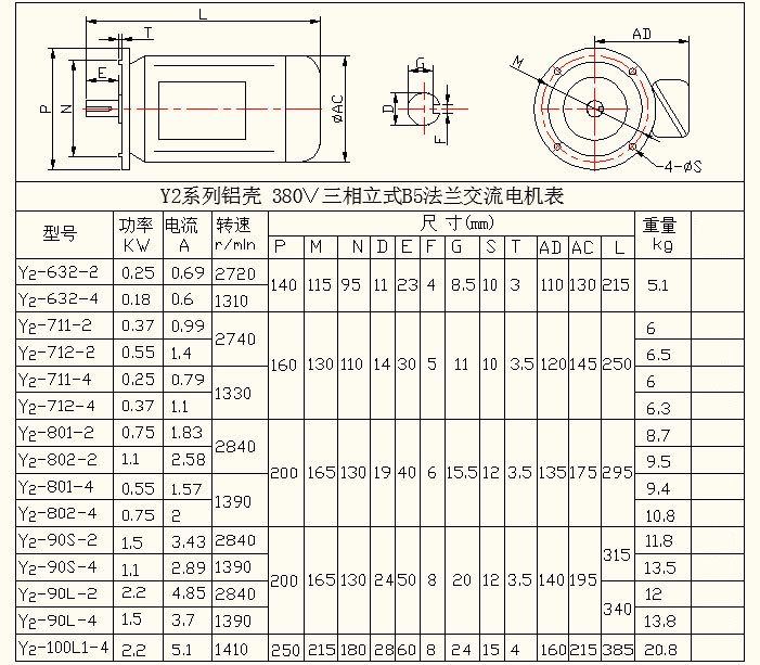 | Y2-802-4 | AC380V | 2A | 0.75kW | 1390RPM | 10.8kg |